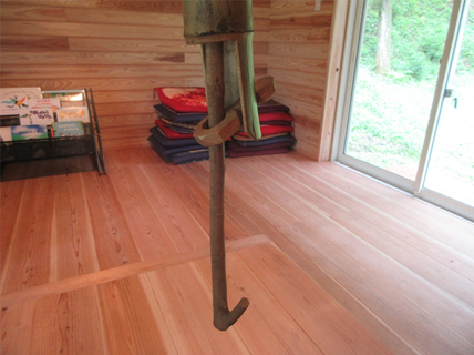 使用している木材はすべて自家山林からの供給材であり、良質材は少ない。むしろ節が多く曲がりのある木を大切に使用している。